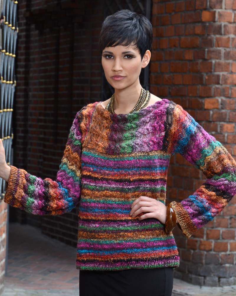 This design is featured in Love Letter by Claudia Wersing, a book from Noro, and uses Noro yarn including Hanabatake