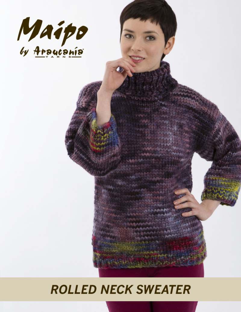 This design is featured in Maipo Roll Neck Sweater, a leaflet from Araucania, and uses Araucania yarn including Maipo