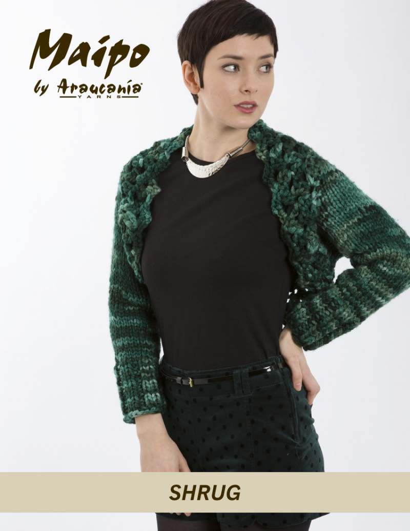 This design is featured in Maipo Shrug, a leaflet from Araucania, and uses Araucania yarn including Maipo
