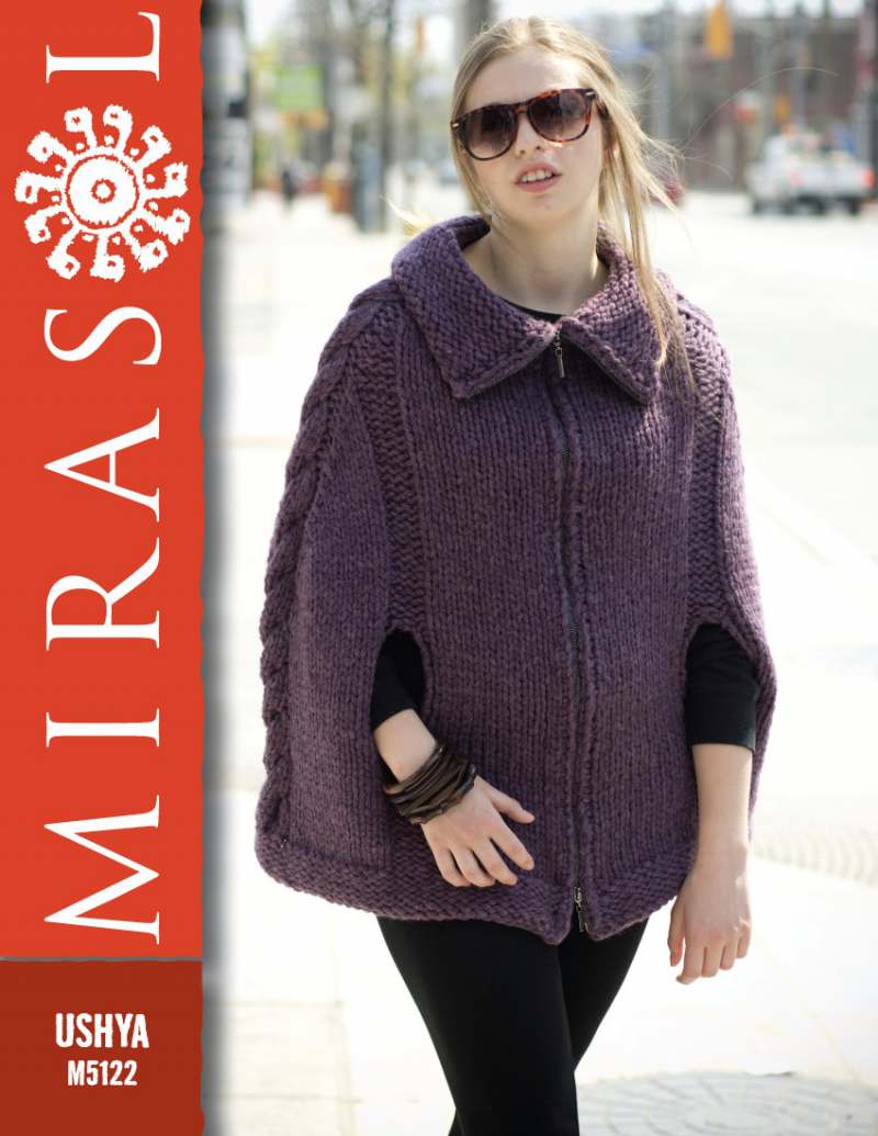 This design is featured in Ushya - Zippered Cape, a leaflet from Mirasol, and uses Mirasol yarn including Ushya