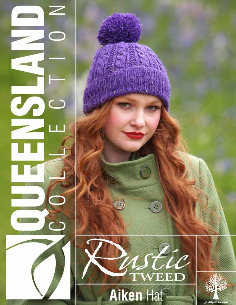 This design is featured in Rustic Tweed - Hat, Wristwarmers & Scarf, a leaflet from Queensland, and uses Queensland yarn including Rustic Tweed