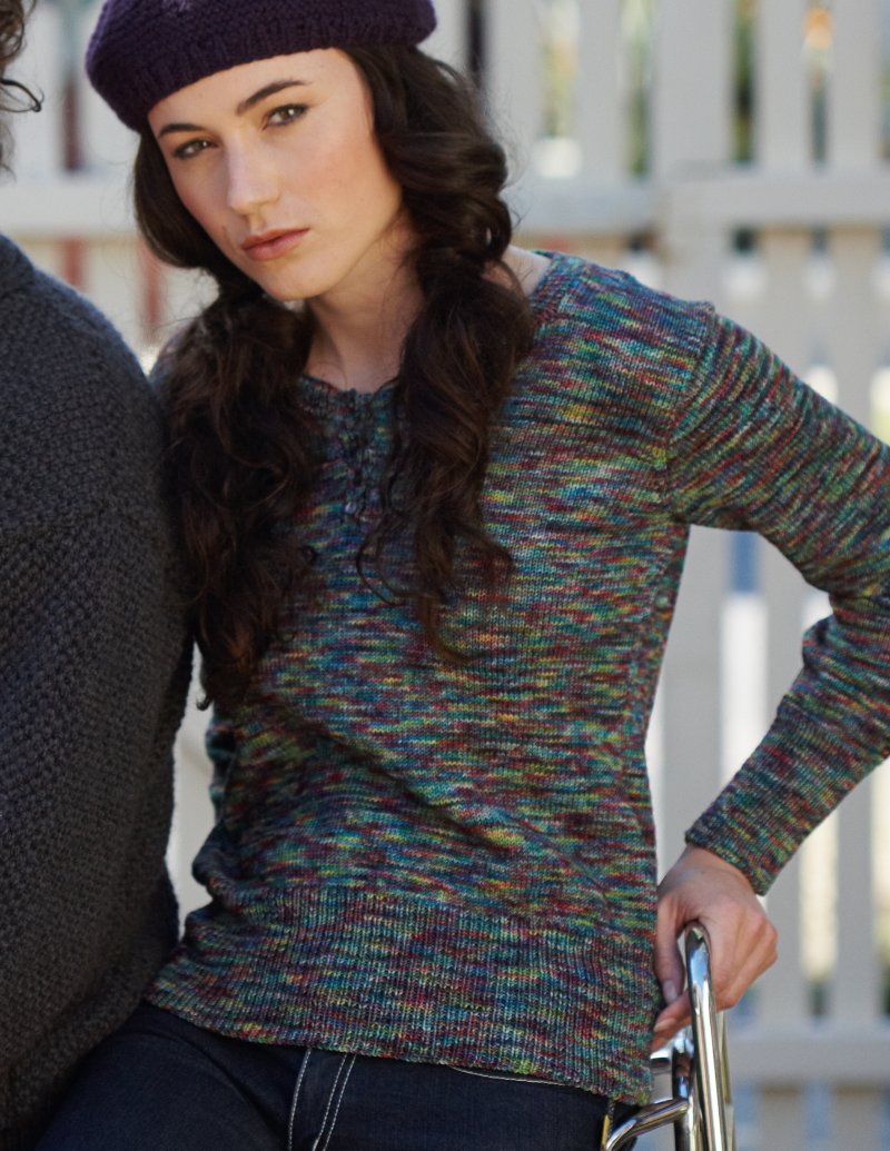 This design is featured in Luxury Knits, a book from Ella Rae, and uses Ella Rae yarn including Lace Merino Hand Painted