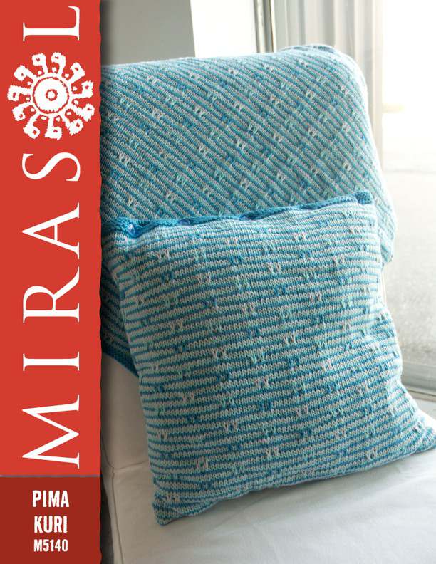 This design is featured in Pima Kuri - Oyster Bay Blanket & Cushion, a leaflet from Mirasol, and uses Mirasol yarn including Pima Kuri