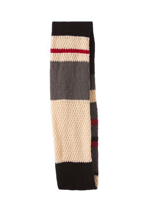 This scarf is worked in the round with 4 different colors, each with their own stitch pattern.