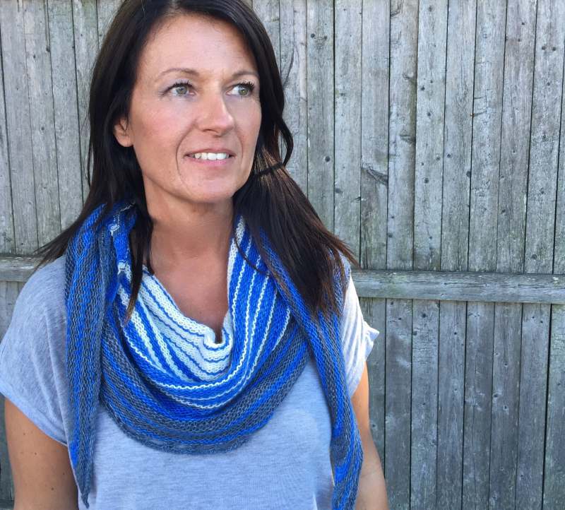 The Volcanos, lakes and general beauty of the Pucon area of Chile inspired this long color striped shawl. The changing colors mimic the contrast between the snow capped volcanos and the beautiful blue waters of Villarrica lake. An area known for adventure tourisim including rafting, skiing and hot springs this shawl is sure to be good company on your next adventure.