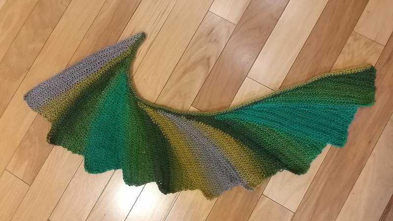This easy Crochet scarf is built of wedges stacked up with a jog. Use a G - H hook with Amitola and the Half Double Crochet stitch. Fun to watch made up. Keep adding wedges for a really fun look!