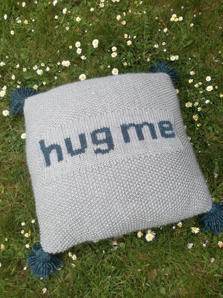 This giant cushion is perfect for snuggling up with on the sofa. It’s knitted in textured moss stitch, and has a button closure at the back so the cover can be removed for washing. The central panel reads “hug me”, but you won’t need much encouragement!