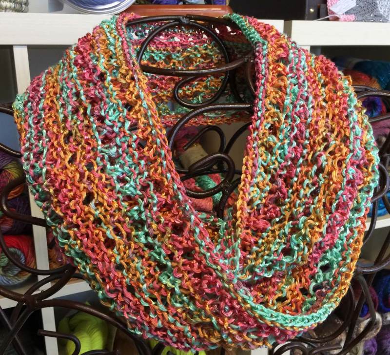 There are two pattern versions, the moebius and infinity cowl; each one is fast and fun to knit.