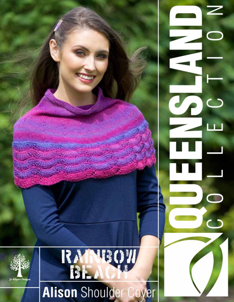 This design is featured in Rainbow Beach - Shoulder Cover, a leaflet from Queensland, and uses Queensland yarn including Rainbow Beach