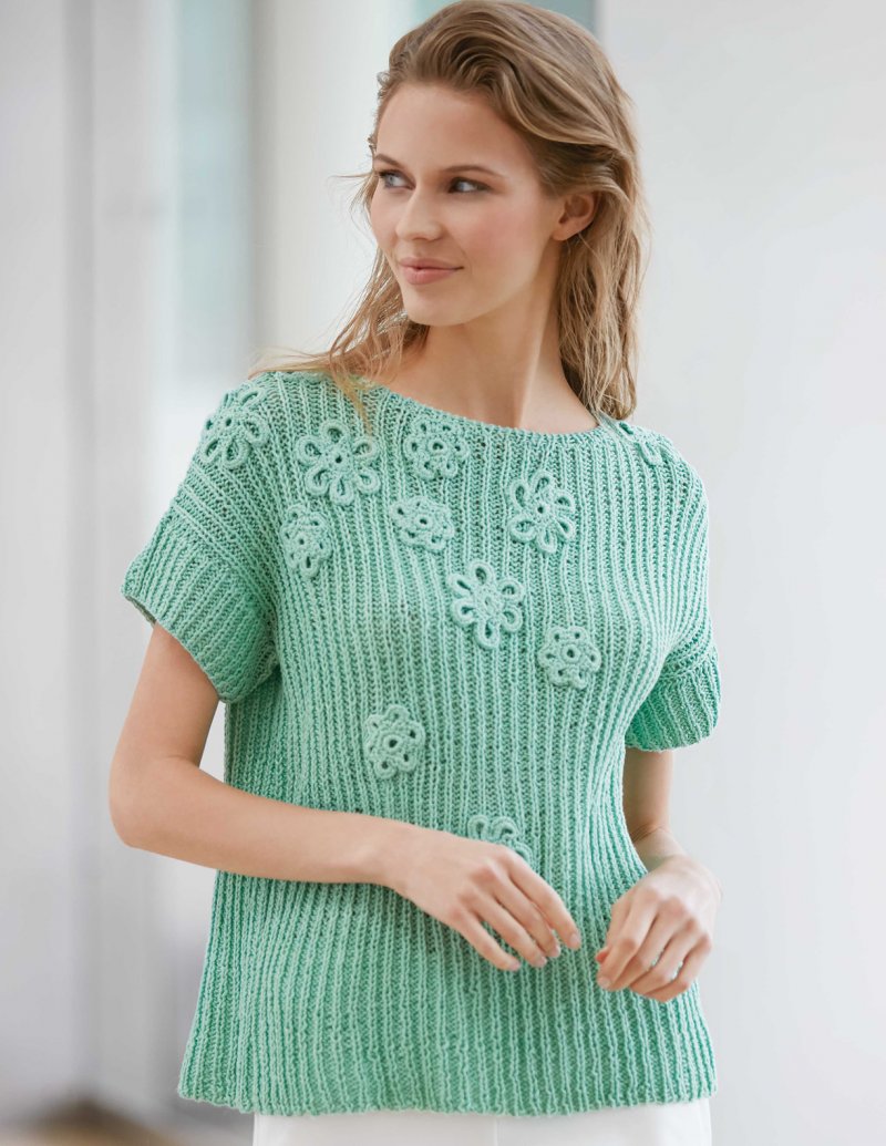 This design is featured in Concept 5, a magazine from Fil Katia, and uses Fil Katia yarn including All Season Cotton