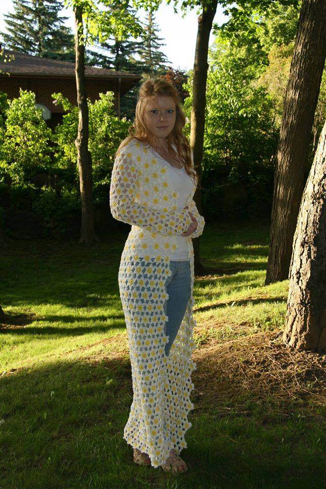 This Magnificently Eye-catching Cardigan is created with crochet technique and combines daisy flowers - all cardigan is made from daisy flowers.