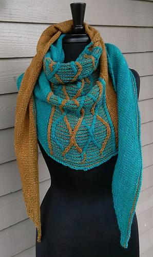 This spectacular shawl measures 90” long and 25” deep at the center, but only uses 1 skein each of Noro Sonata! The two-color cable gives you a lovely centerpiece running down the back, and the long swaths of stockinette allow you to see the amazingly delicious undertones in Sonata.