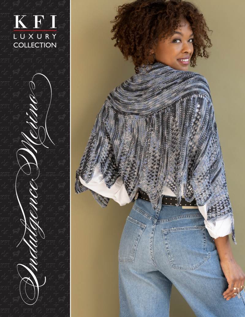 This design is featured in Indulgence Merino - Ivonne Shawl, a leaflet from KFI Collection, and uses KFI Collection yarn including Indulgence Merino