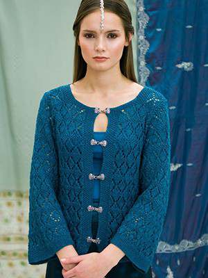 This design is featured in Rajasthan, a book from Louisa Harding, and uses Louisa Harding yarn including Mulberry