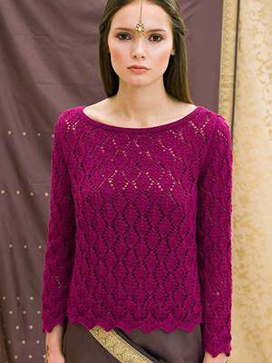 This design is featured in Rajasthan, a book from Louisa Harding, and uses Louisa Harding yarn including Mulberry