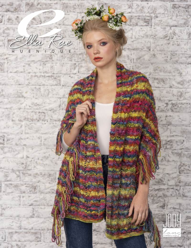 Completed Wrap is 19 1⁄4 in (49 cm) wide, excluding fringe, and approx 63 in (160 cm) long.