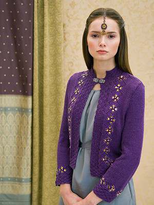 This design is featured in Rajasthan, a book from Louisa Harding, and uses Louisa Harding yarn including Mulberry