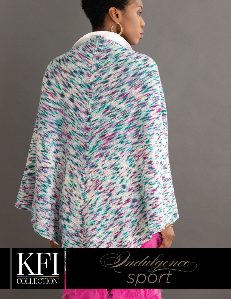 Soothing to knit and cozy to wear, the simple style of the Genesis Shawl allows the hand-painted colors of Indulgence Sport to take center stage.