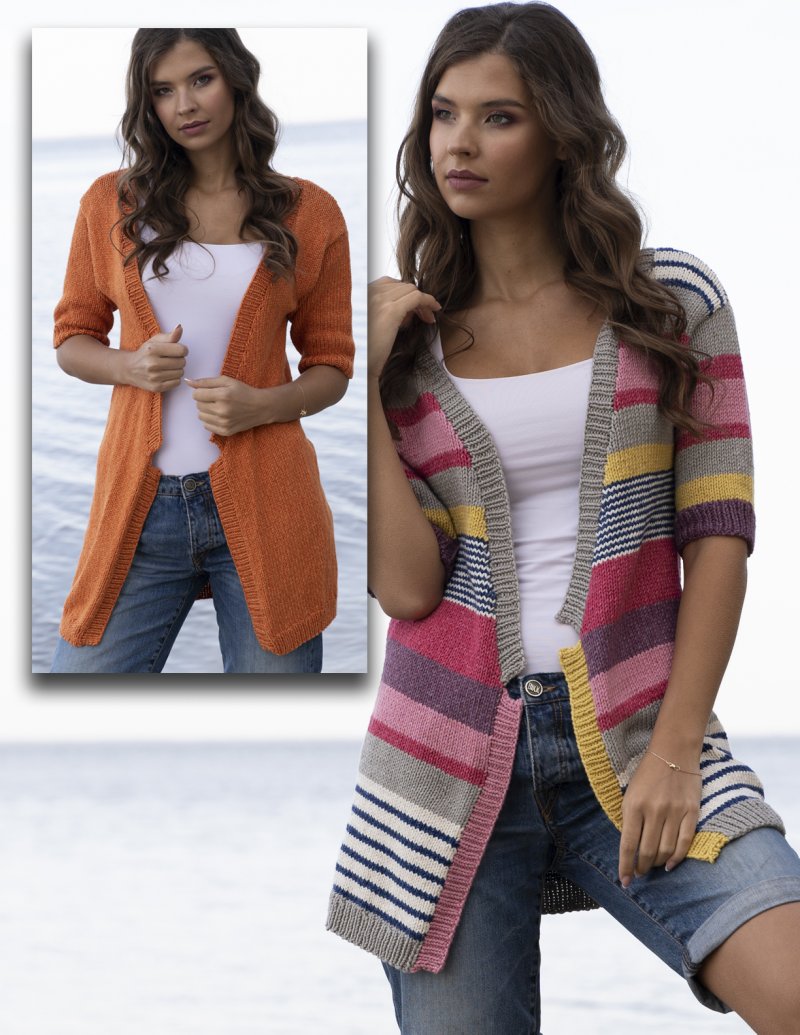 This cardigan is so wonderful you'll want to knit both versions! The body is knit in one piece to the underarms for minimal finishing.