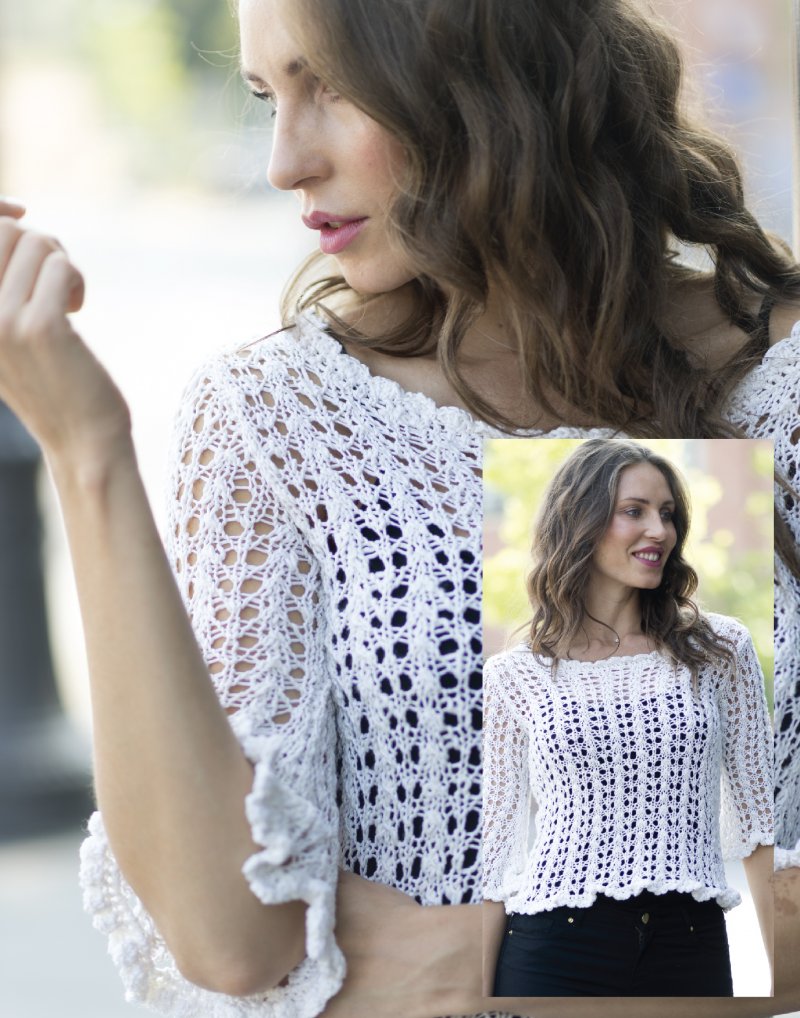This design is featured in Gedifra Spring/Summer 2020 Magazine, a magazine from , and uses yarn including Riviera
