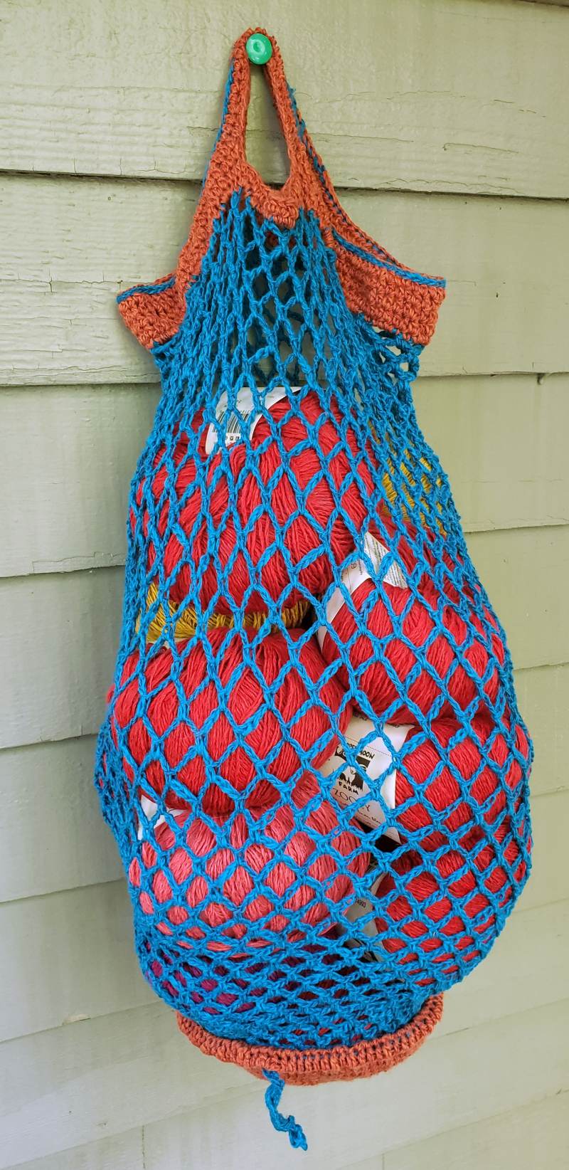 Thankfully, many of you have gotten so much better about having bags when you come to get your yarny delights, but for those of you who still need practice, or more handy bags, Turtle Surprise is the best! It tucks in to be just about a 4 diameter sphere, but easily holds loads! The picture you see here - it has FOURTEEN balls (100 grams each!) of Zooey in it. With room to spare! It is really great for all your marketing, not just the fun yarn kind.