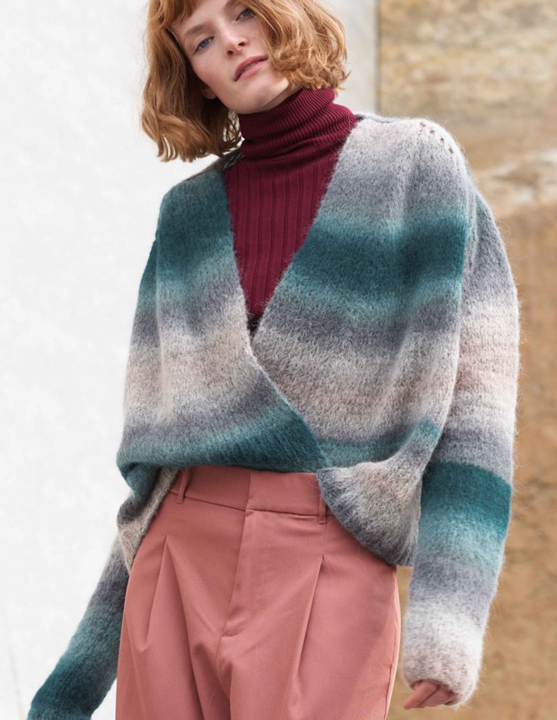 This design is featured in Concept 10, a magazine from Fil Katia, and uses Fil Katia yarn including Atmosfera