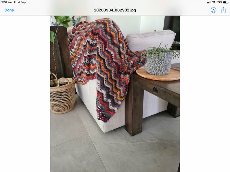 Only 2 stitches are required in this therapeutic and relaxing 2 row pattern repeat. Measures 58 x 71 (147cm x184 cm)