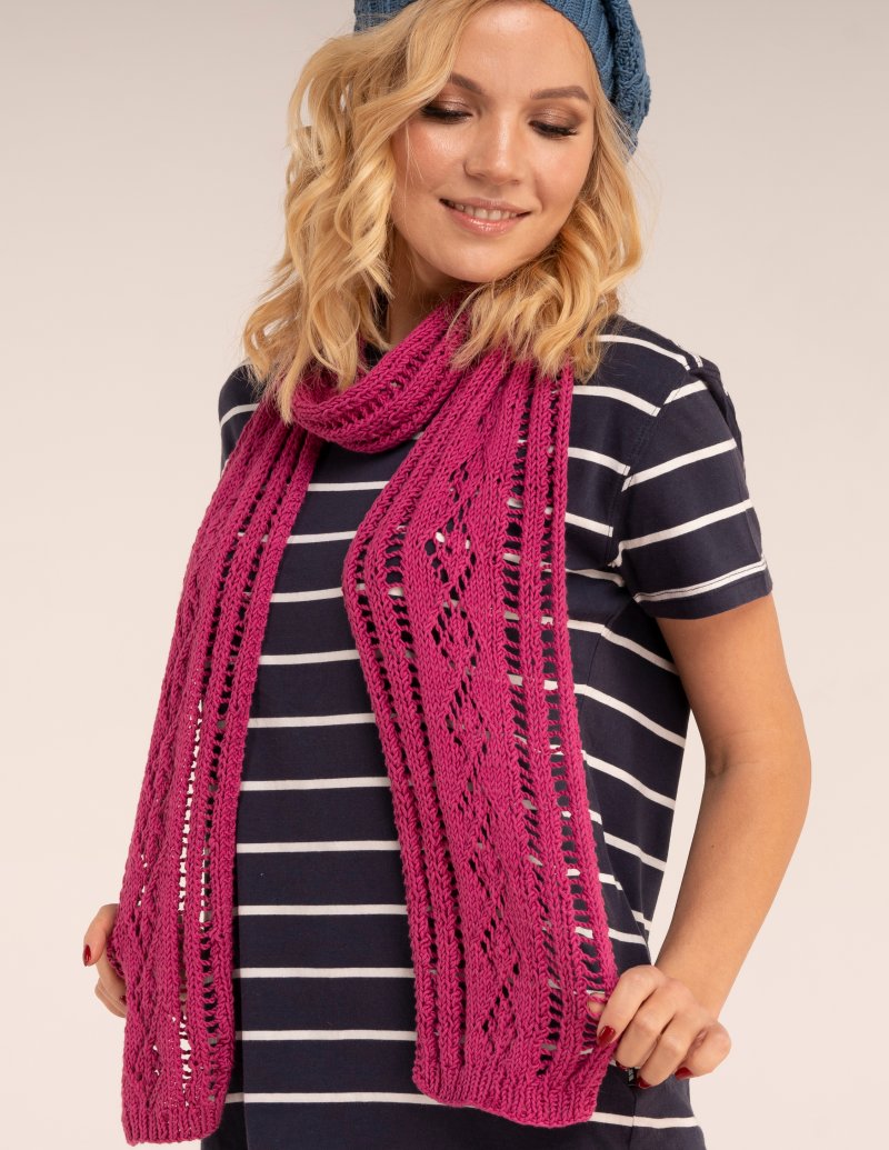 Completed scarf measures approx 16.5 cm (6 1⁄2 in) wide and 189 cm (74 3⁄4 in) long.
