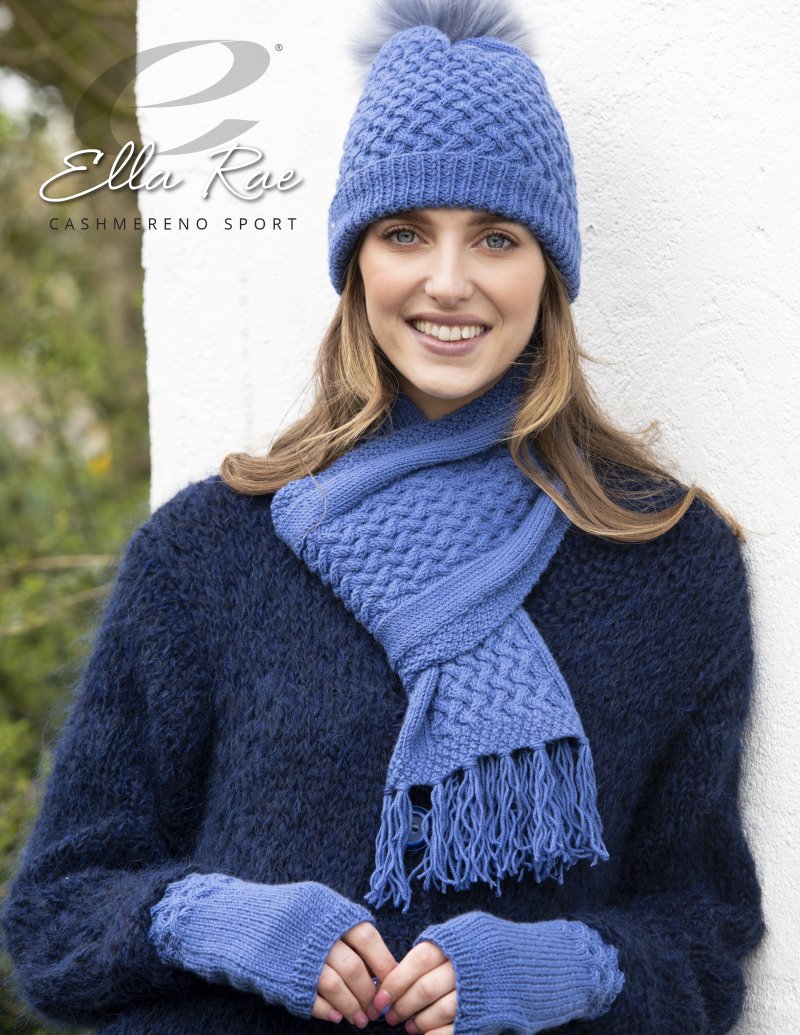 “Liz Hat, Scarf & Fingerless Mitts”