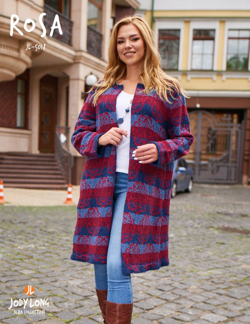 Jody suggests using the stranded knitting technique to create the oversized rose motifs that adorne this fabulous, striped jacket.