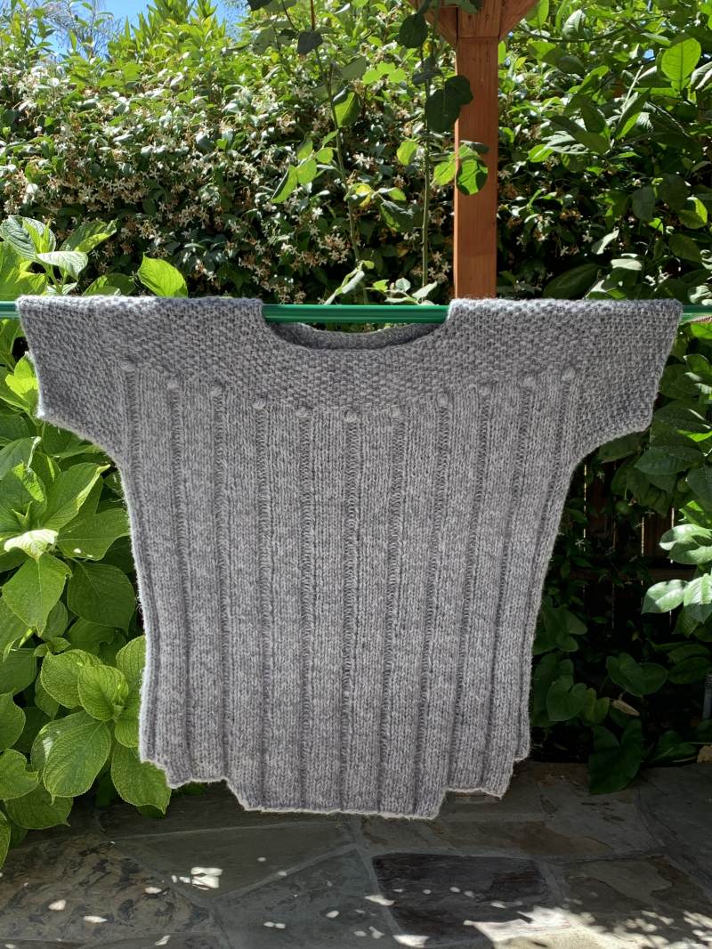An oversized poncho worked from the bottom up. both the front and back bottoms are started, joined together at the sides and worked in the round until the armhole. The front and back separated and are worked flat up to the shoulder. The shoulders are shaped with short row shaping and then are joined together with a 3 needle bind off. Weave in any ends and you are finished. Wear this for an evening stroll on the beach or a light cover up for a summer convert and in the cooler months pair with a long sleeved shirt for a completely different look.