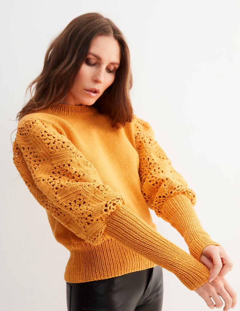 “Bettina Knit Pullover With Crochet Sleeves”