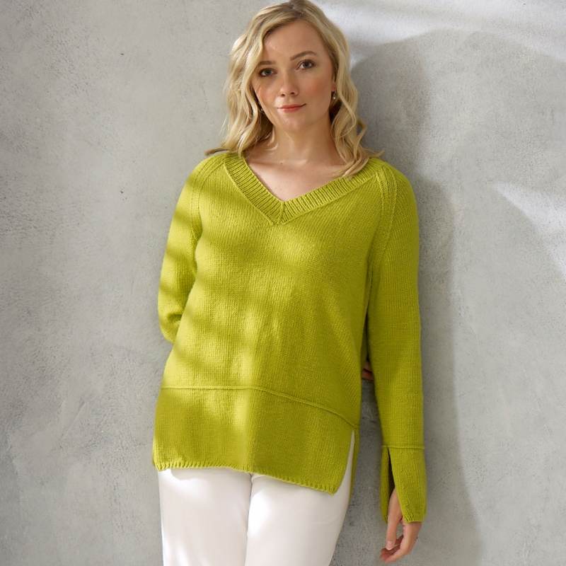 Antoinette is a long sleeved, v-necked sweater which feature a split hem and split cuffs.