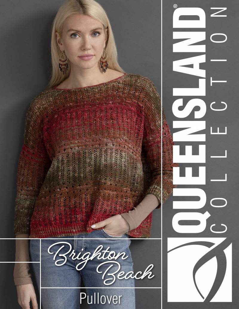 Twisted ribbing segues into an all-over lace pattern in this attractive drop-shoulder pullover.