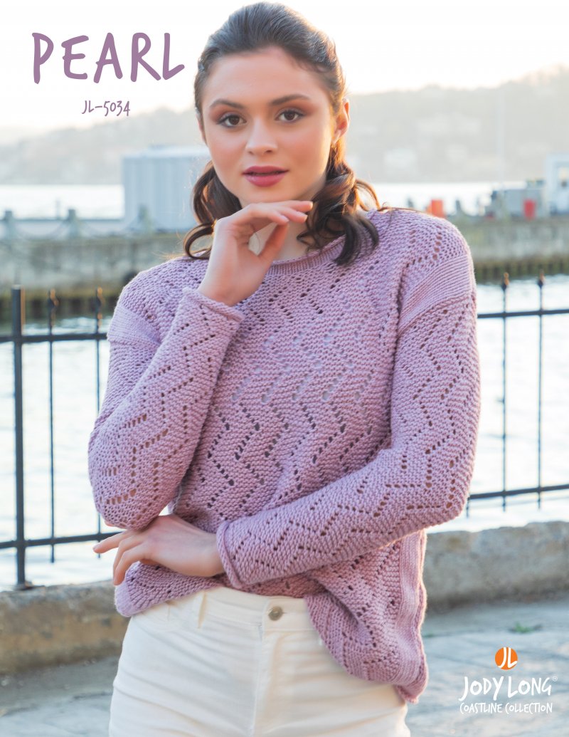 The all-over eyelet zigzag design on this pullover is presented in chart form only.