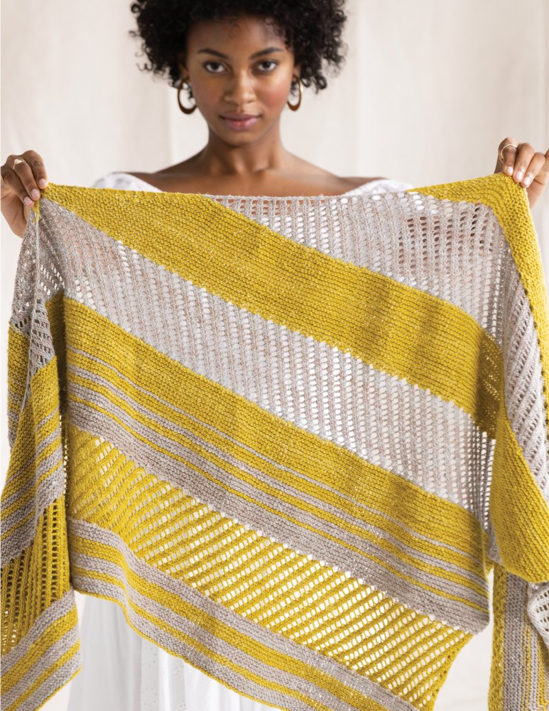 Choose your two favorite colors to play across simple garter and mesh lace textures.