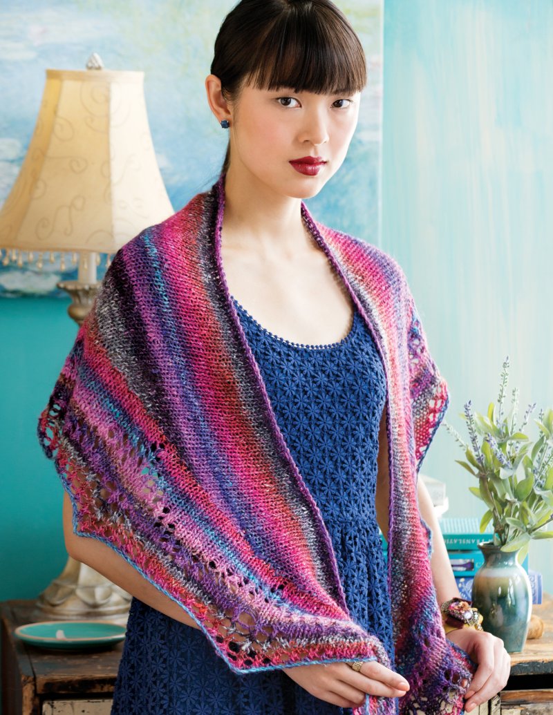 Constructed using decreases and short rows, the crescent shape lends itself to a variety of styling options.