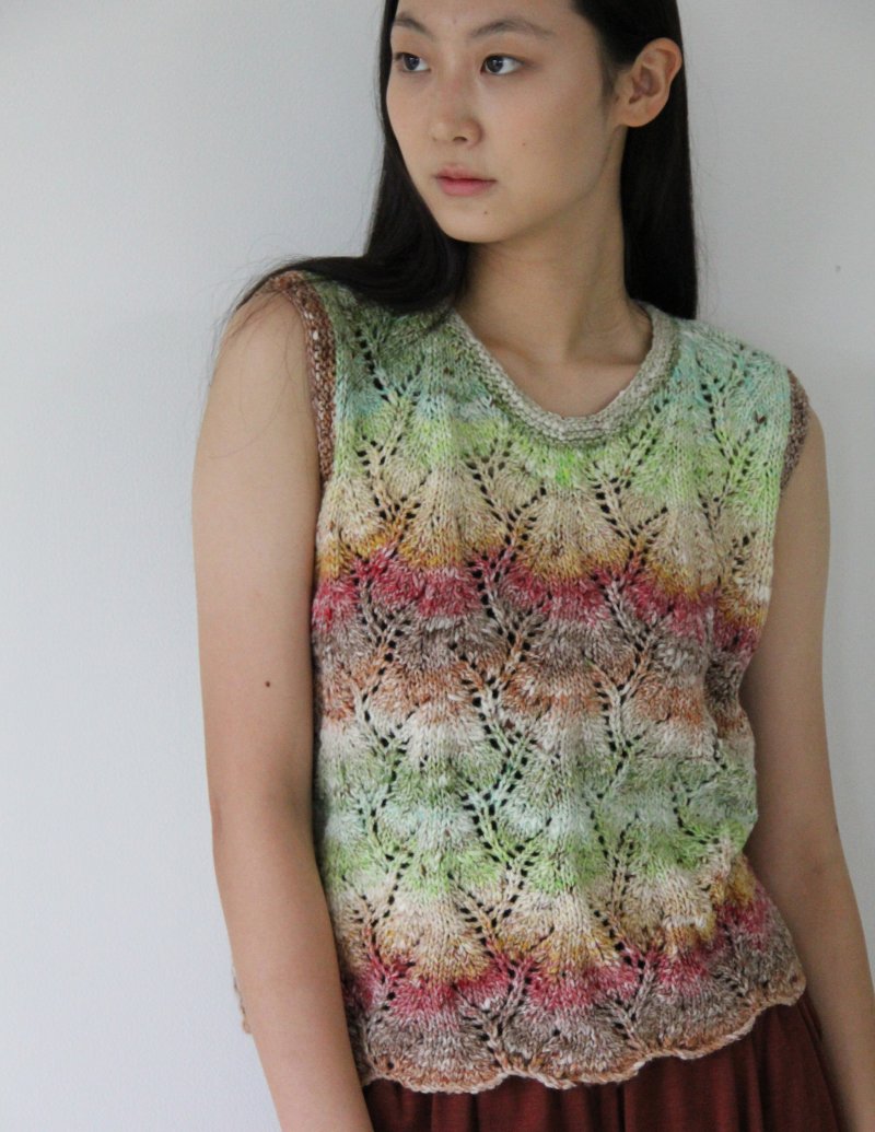 Eyelet designs evocative of vines wind their way up this sleeveless top.