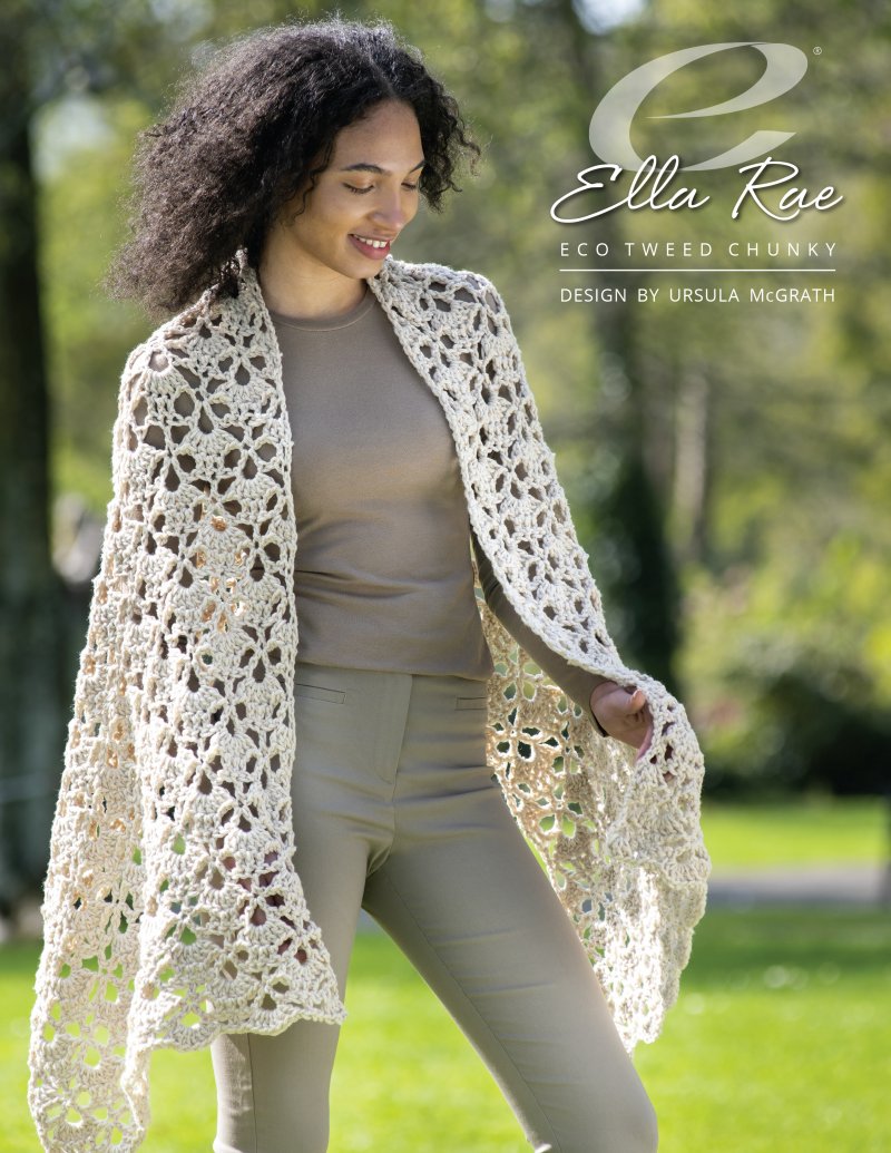 This design is featured in Eco Tweed Chunky - Lana Crochet Shawl, a leaflet from Ella Rae, and uses Ella Rae yarn including Eco Tweed Chunky