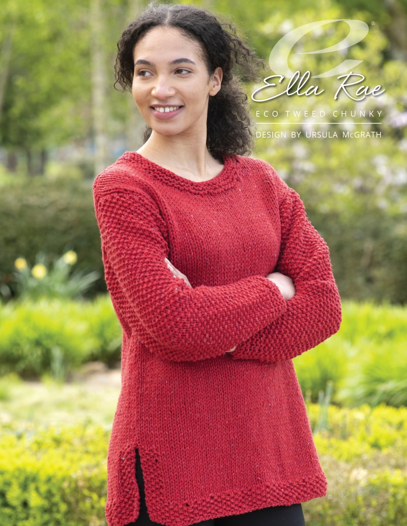 A wardrobe classic. Moss Stitch sleeves contrast with a stockinette stitch body.