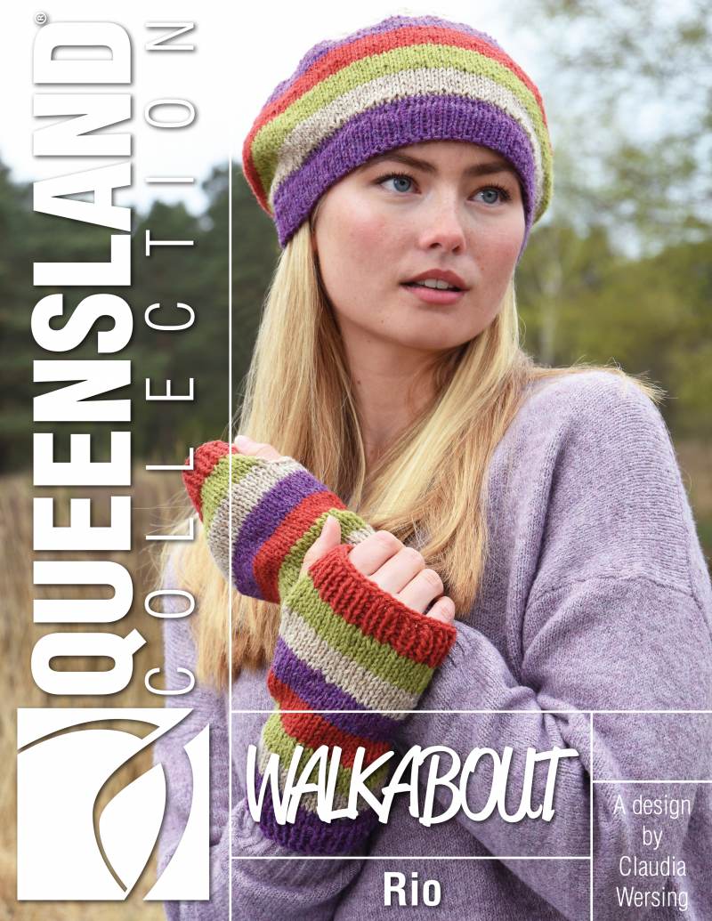 This simple set has big impact from the great colors of Walkabout yarn. Suitable for advanced beginners who want to practice knitting in the round.