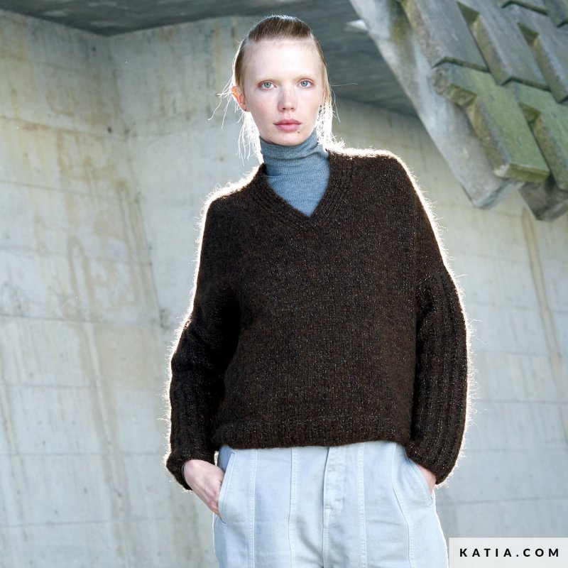 This design is featured in Concept 13, a magazine from Fil Katia, and uses Fil Katia yarn including Alpaca Silver