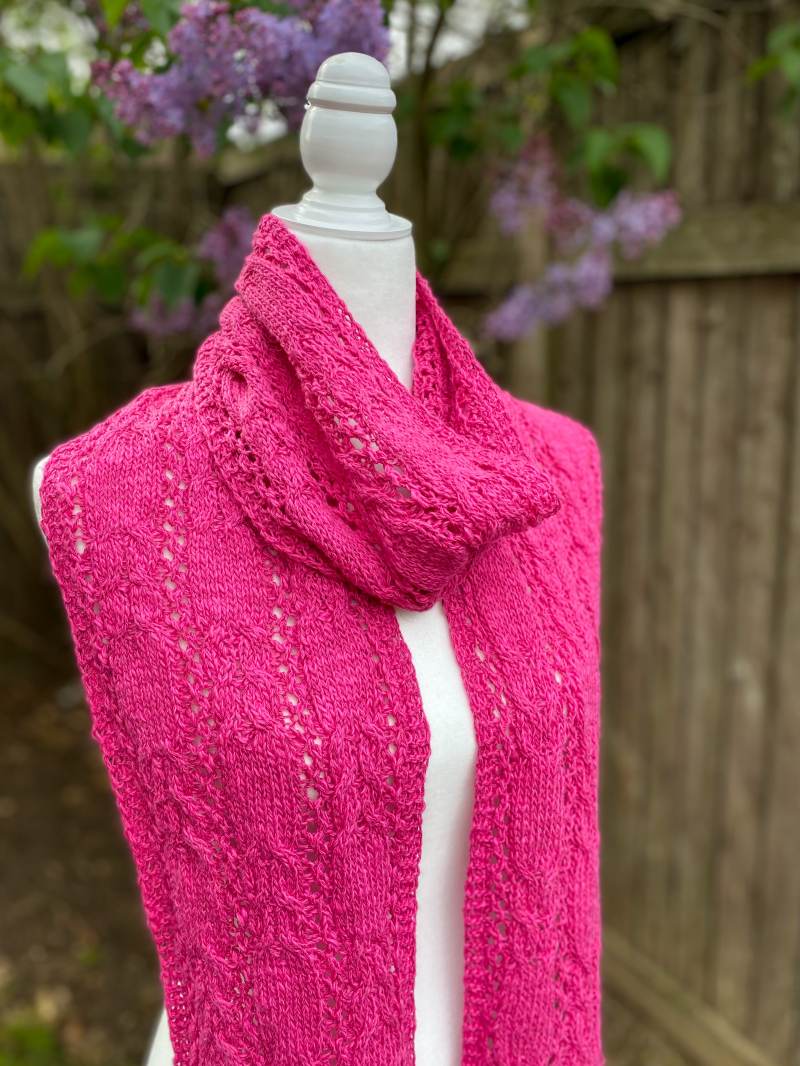 The cables are simple and easy to follow, with alternating sections to hold your interest. Pattern instructions are fully written, and a chart is included for the pattern repeat.