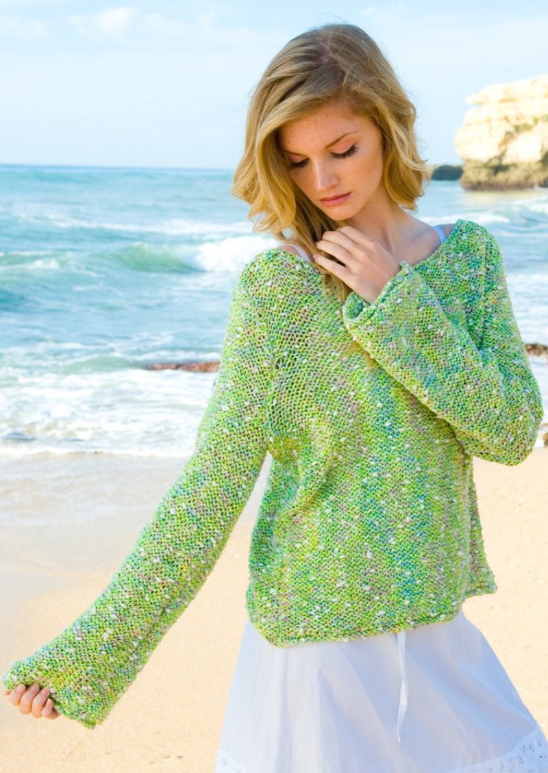 This design is featured in Swallowtails, a book from Louisa Harding, and uses Louisa Harding yarn including Flotsam