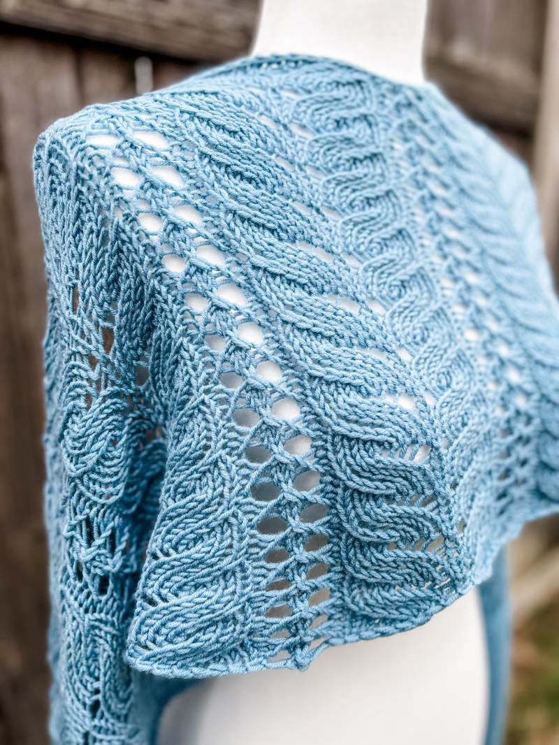 Growing simply and quickly in stockinette stitch, the side panels are perfect for social knitting or TV watching. Youll finish knitting the side panels with a couple of repeats of the lace to add extra detail and interest to your shawl, no matter how you wear it!