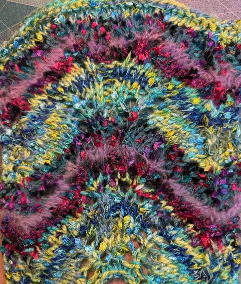 This design uses yarn including Moonshine Fine,Vela - (C2614),Ara - (C549),Patagonia Organic Merino, and Iris