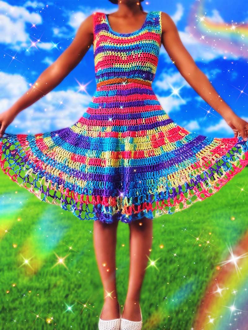 Sleeveless crochet tank Summer dress with an open flare detail.