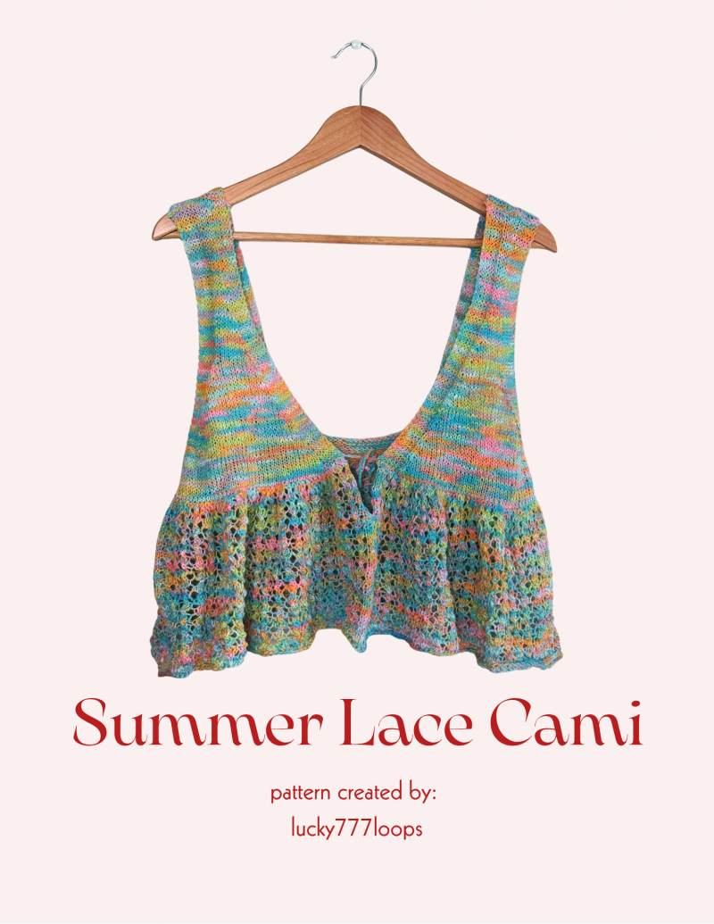The Summer Lace Cami is a made-to-measure pattern perfect for summer! This pattern involves basic knitting stitches and a simple 4-row repeat lace design. Though an intermediate knitter may have an easier time following this pattern, detailed descriptions of every step as well as plenty of photos and diagrams make this pattern accessible to any brave beginner looking to learn a few new techniques.