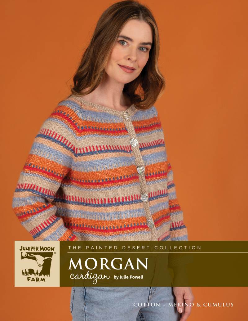 worked back and forth in rows to the cuff. The cardigan is worked in stranded Stockinette stitch and Seed stitch.