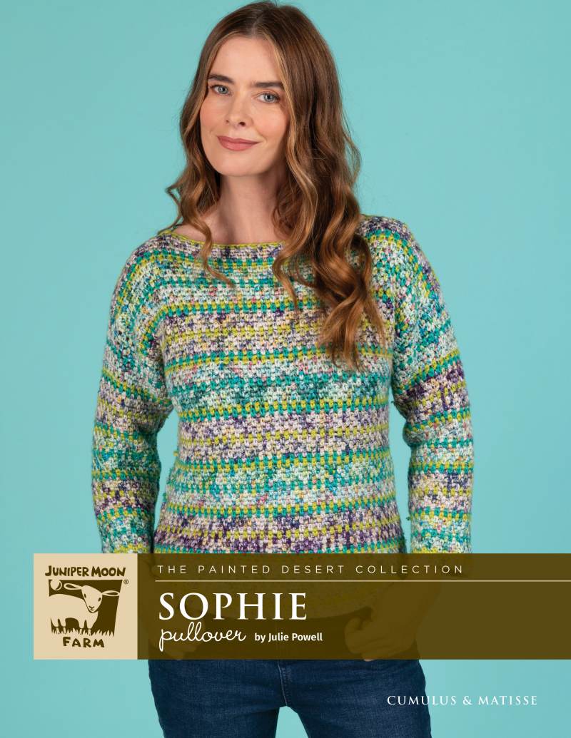 Cropped pullover with bateau neck is worked from the bottom up in linen stitch crochet. Body is worked back and forth in flat pieces. Sleeves are picked up along armhole of body and worked down to cuff, flat back and forth. The neckline is